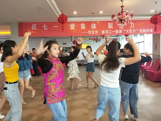 在中國共產黨成立98周年之際,為了提倡廣大員工愛國家、愛集體、愛家庭的良好風氣,匯聚起員工敬崗愛業、認真干事正能量,同時為了關愛、豐富員工的業余生活,華寶公司黨支部、工會聯合行政中心、供應鏈管理中心組織主題為:慶七一 愛集體 聚合力一一華寶漢·彝各族員工一家親“火把節”黨群活動,參加活動的有少數民族員工70多人以及全體黨員、各車間主管級以上和后勤人員等,總計參加人數近百人,讓少數民族同胞感受到了黨的溫暖,家的歸屬感!